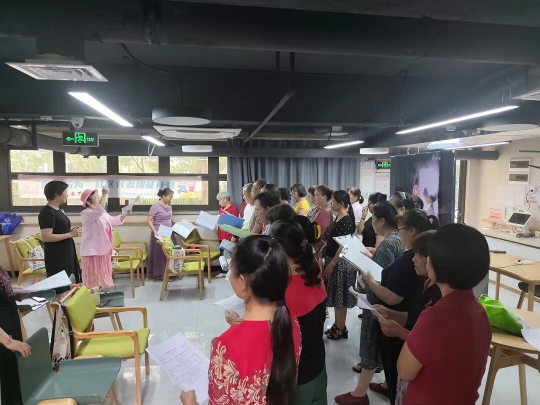 进入歌曲演唱技巧教学阶段,老师通过生动示范,引导长者精准把握节奏、细腻处理情感。经典曲目合唱练习更将课堂氛围推向高潮 —— 主曲目《我的祖国》演唱时气势磅礴,《洪湖水浪打浪》《红梅赞》等副曲目则旋律悠扬,在老师的悉心指导下,长者们的歌声愈发整齐动听,唱出了对生活的热爱与对经典的敬意。
