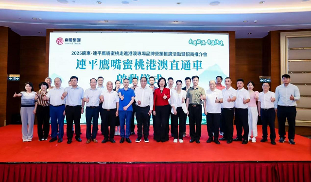 7月17日,南国桃源·粤港澳连——2025广东·连平鹰嘴蜜桃走进港澳专场品牌营销推广活动暨招商推介会在澳门举行。本次活动由南粤集团有限公司、中共连平县委、连平县人民政府、省直组团纵向帮扶驻连平县工作队联合主办,连平县“百县千镇万村高质量发展工程”指挥部、连平县农业农村局、广东南粤农业产业服务有限公司承办。本次活动以澳门为窗口,以构建“产地认证+高端渠道+国际化”模式,推动连平鹰嘴蜜桃从“县域特产”向“国际品牌”跃升。活动吸引百余位政商代表参与,成果丰硕。