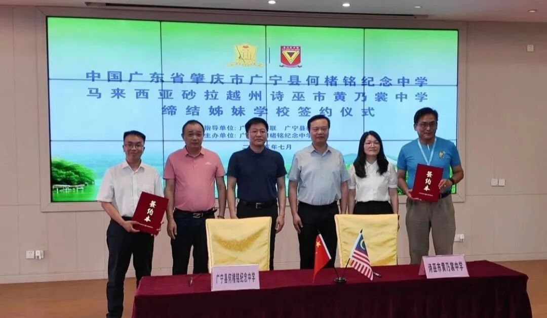 开营仪式上,广宁县何楮铭纪念中学与马来西亚诗巫市黄乃裳中学签署了姊妹学校合作协议,通过“友城+教育”组合拳,推动两地优质教育资源共享、实现优势互补和互利共赢局面。