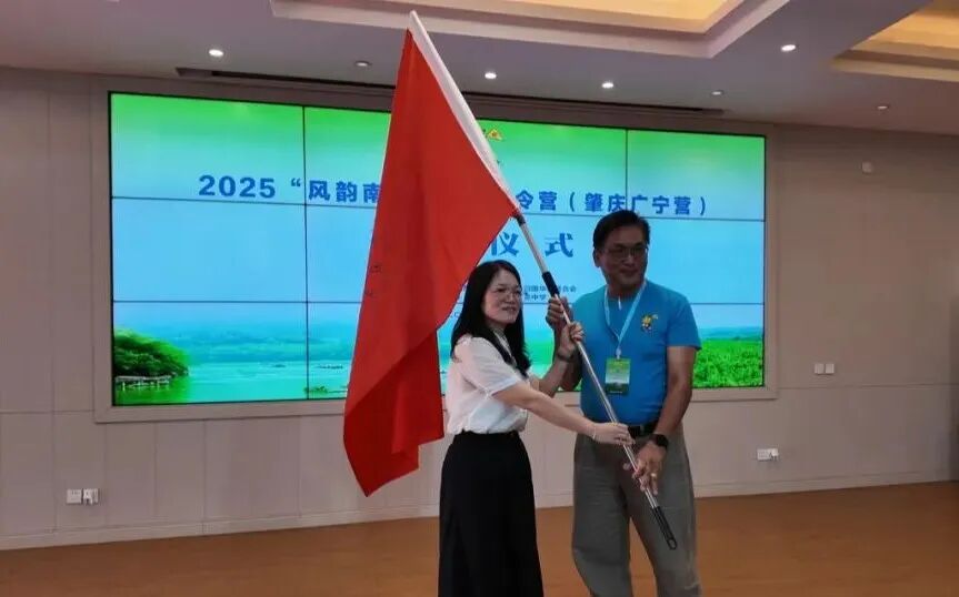 在热烈的气氛中,县侨联负责人向夏令营总领队授予营旗,标志着为期10天的夏令营活动正式启动。