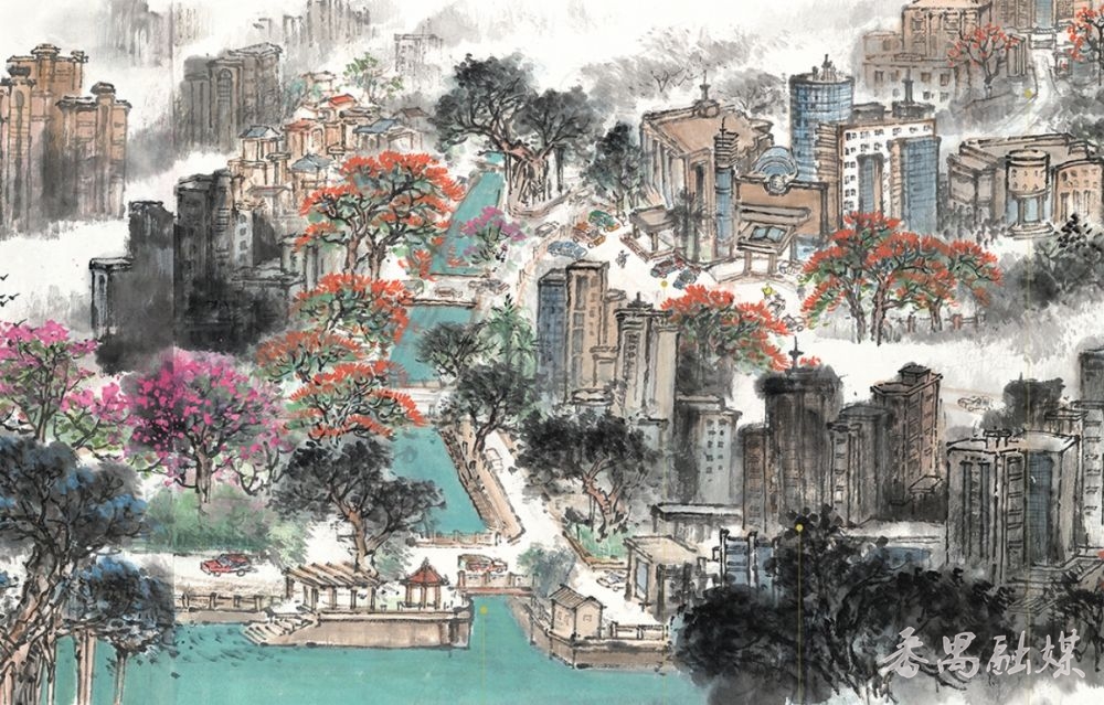 近日,番禺本土画家曾海亮历时一年多创作的20米国画长卷《市桥新画卷》正式对外展出。这幅长20米的画作以市桥河为轴线,从西到东、由古至今铺展开一幅兼具历史厚度与时代活力的城市图景,成为展现市桥作为番禺核心区发展脉络的生动载体。