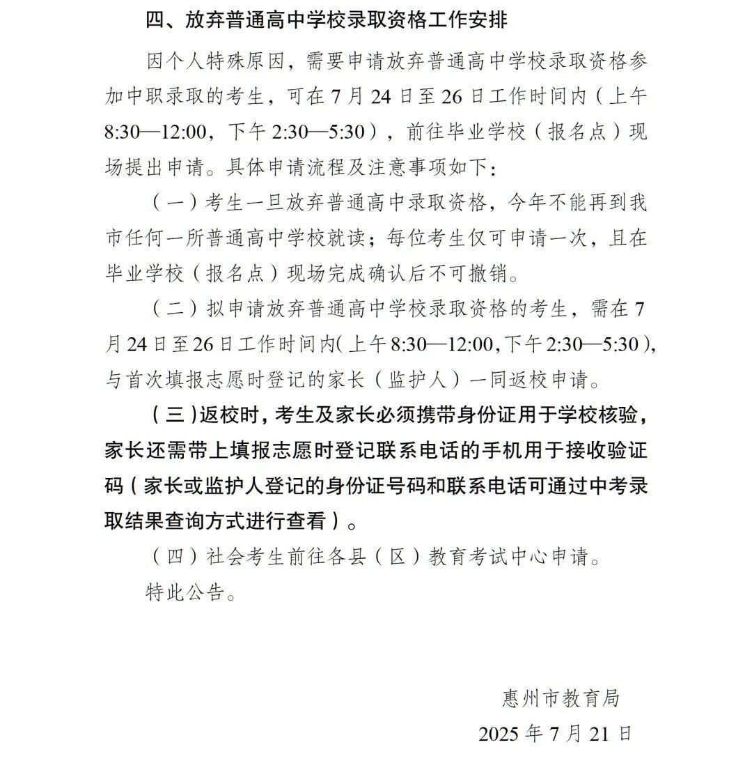 2025年惠州高中录取分数线公布!