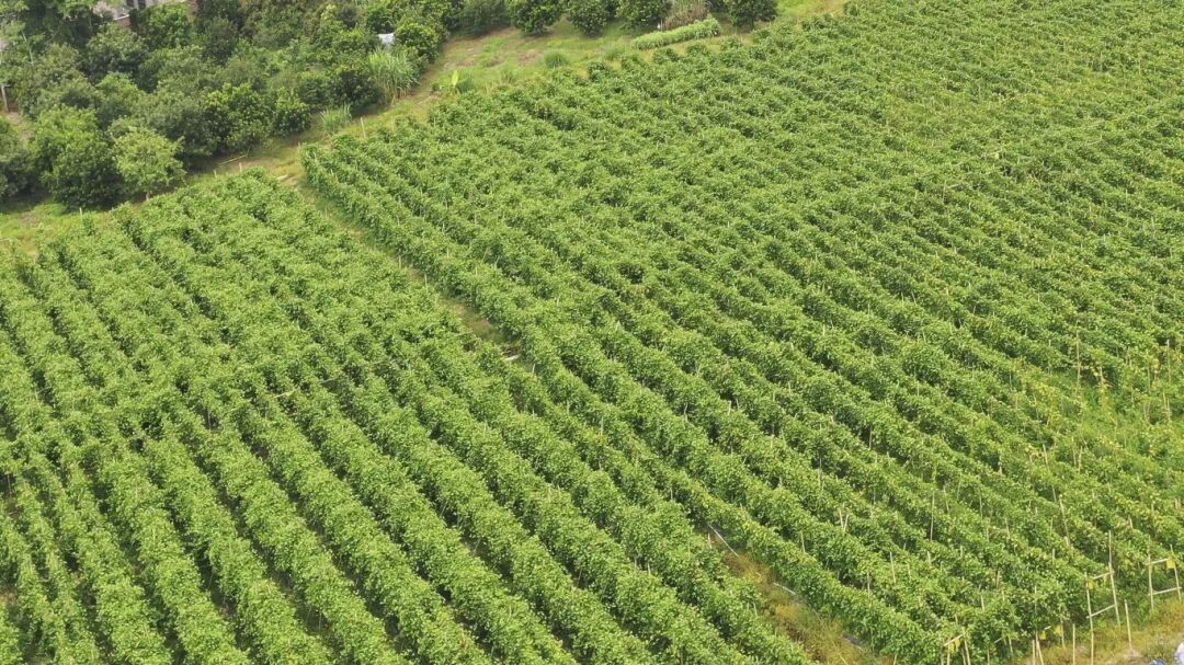 项目采用先进种植管护技术,建成水泥桩铁丝网棚架、水肥一体化滴灌系统等标准化设施,持续改良种苗。基地年挂果四轮,产量达22.8万斤,产值约250万元,年增村集体经济收入10万元。目前果实丰茂,已进入成熟采摘期。