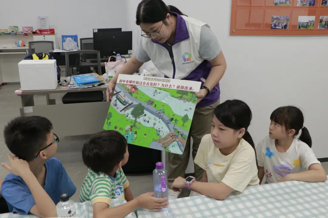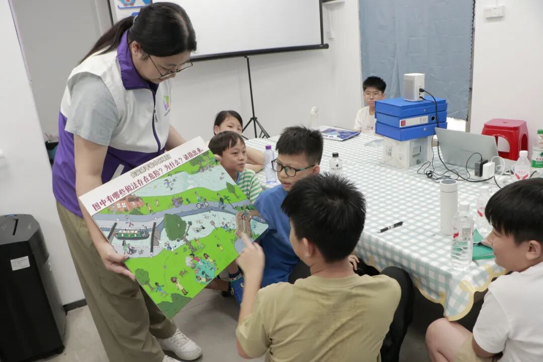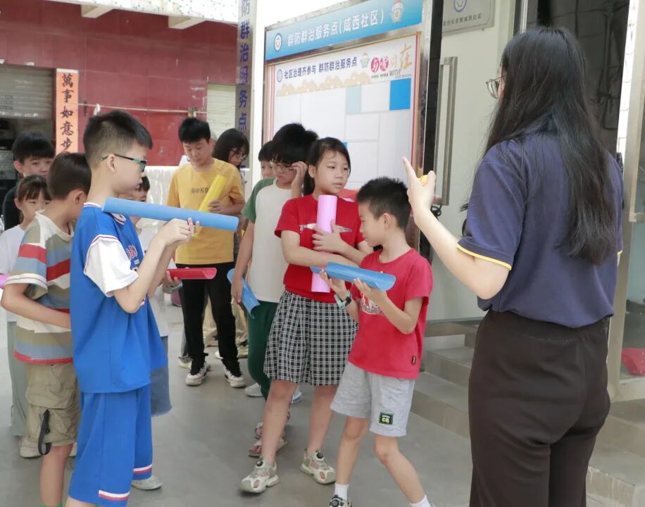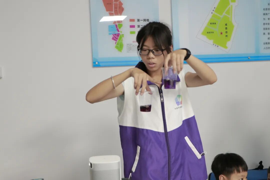 第四天课程兼具实用性与趣味性。“反诈小卫士”环节特邀咸西反诈中心专业人员,深入剖析新型网络骗术,为孩子们筑起防诈“防火墙”。“平安住宅小区”项目社工为青少年讲解居家安全知识,大家都踊跃参与。“安全带拯救行”则化身生动科学课,大学生志愿者用蝶豆花、紫甘蓝、火龙果的变色魔术,揭示人工色素的健康风险;鸡蛋与泡沫箱的碰撞实验,直观演示头盔在意外中的关键保护作用,让安全知识深入人心。