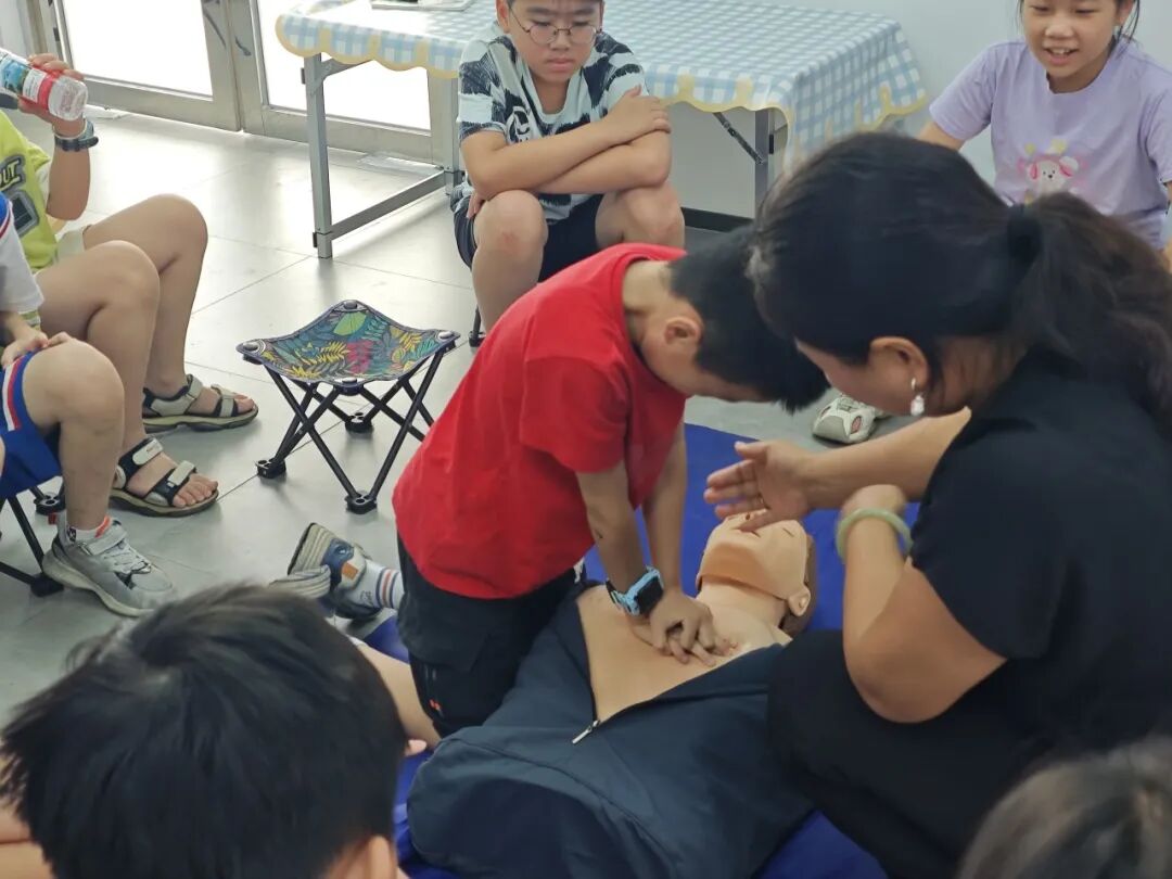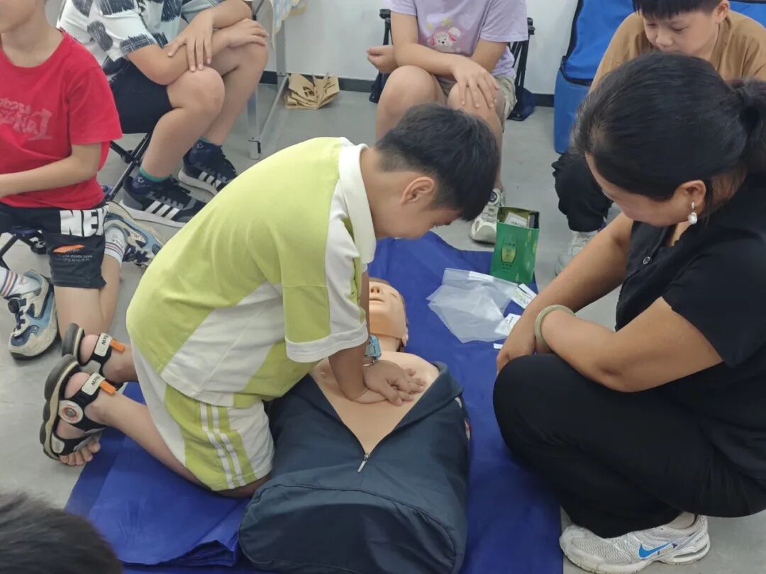 第三天上演“黄金4分钟极限挑战”,邀请了长安平促会急救护理队胡队长,通过模拟演练,让孩子们掌握心肺复苏等关键急救技能,理解时间就是生命的真谛。