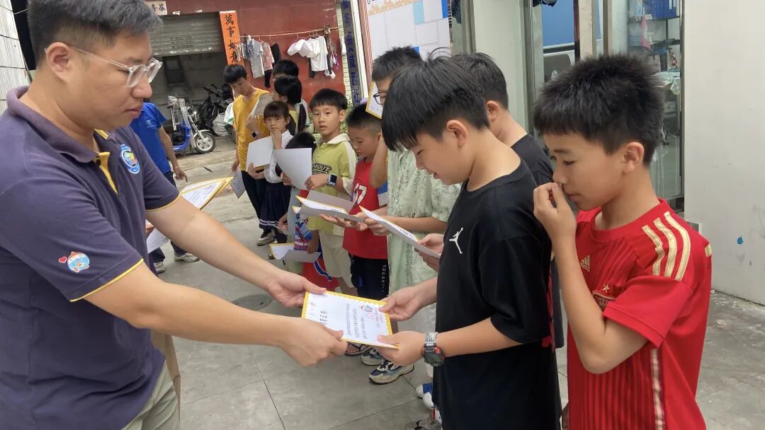 最后一天,孩子们学习辨识生活中的“安全声音”,提升对潜在危险的警觉性。活动高潮落在“友善树”创作环节——孩子们将精心书写的安全心愿与小贴士悬挂于树梢,棵棵“友善树”承载着对平安社区的美好期许。结营仪式上,长安平安建设促进会党支部书记为全体学员颁发结营证书,表彰他们在夏令营中的积极表现和安全意识的显著提升。