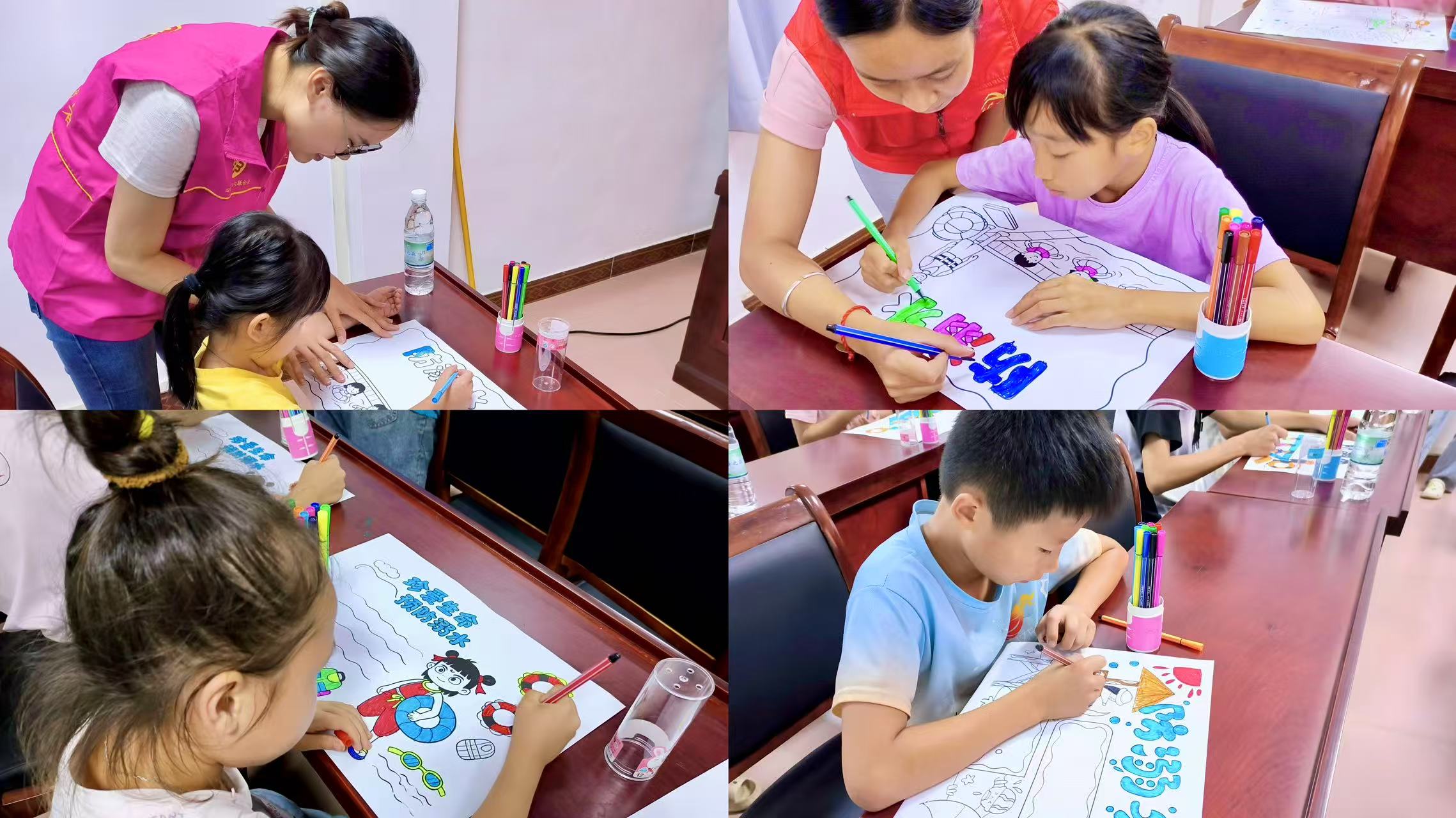 活动当天,镇妇联志愿者现场指导学生绘制手抄报,派发防溺水小扇子,切实做好预防学生溺水宣传教育工作。