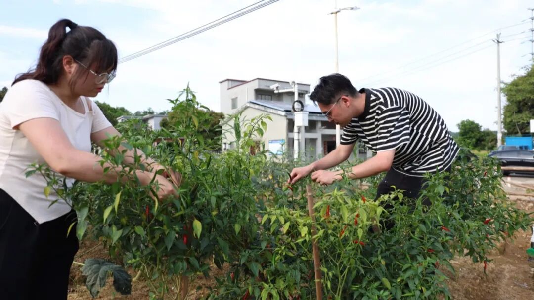 “看这个辣椒,多好啊,全是红色的!”“自己摘的感觉不一样。”周末,东华村的共享菜园里热火朝天,游客正围着辣椒丛采摘辣椒,沉浸式体验采摘的乐趣和丰收的喜悦。2.04亩的“共享田”里长满了豆角、秋葵、红薯叶等应季蔬菜。这片曾经的零散农田,如今成为了游客的“开心农场”,游客们在这里找到了久违的放松与归属感。