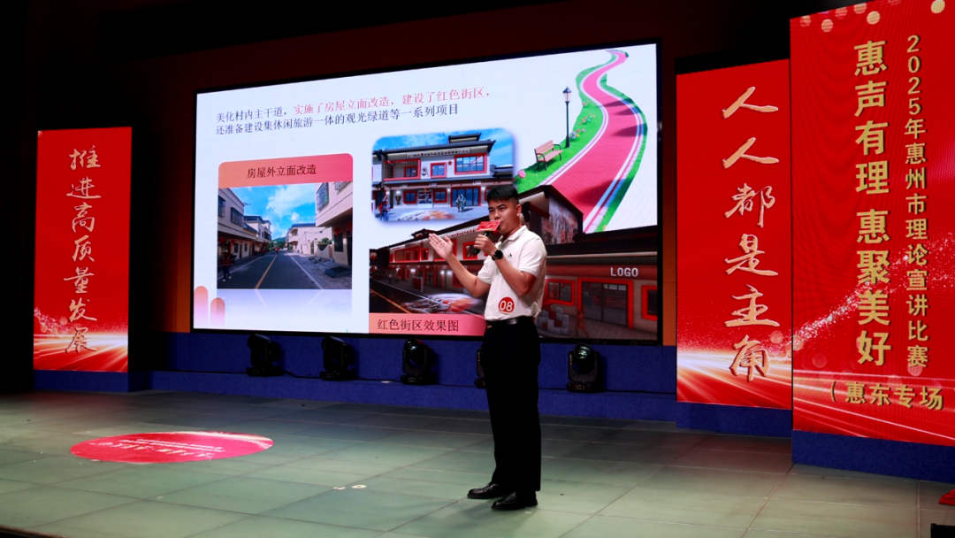 比赛中,14名选手们或慷慨激昂,或娓娓道来,将理论融入故事,让党的创新理论深入人心。此次宣讲主题丰富,涵盖红色传承、基层奉献、高质量发展等多个领域,如《传承红色基因,汲取奋斗力量》、《用一颗真心、一股拼劲、一份担当让“百千万工程”落到实处》、《从“网友热评”探“市监”万事》等。选手们有扎根基层的村干部、教书育人的教师、救死扶伤的医生等等。他们以工作经历和所见所闻所感为切入点,用真挚语言、鲜活案例,生动讲述着“高质量发展,人人都是主角”的惠东故事。