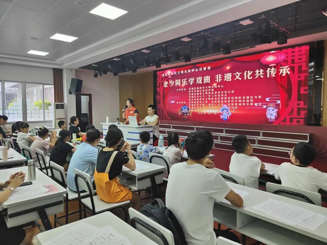 活动把潮汕非遗与民俗置于课堂中,让“老少”在沉浸式体验中延续文化根脉。2023年暑假的潮剧课堂上,国家三级演员林丽芳以《江姐》选段《盼亲人》为教学内容,既传授潮剧的唱腔转音、手势身段,又通过革命故事传承红色基因。学员董晓帆课后坦言:“活动让我们有机会学到真正的潮音,在戏剧中我们学到了每个人物的英雄事迹,启发我们青少年要有时代的担当、时代的使命,勇敢向前。”