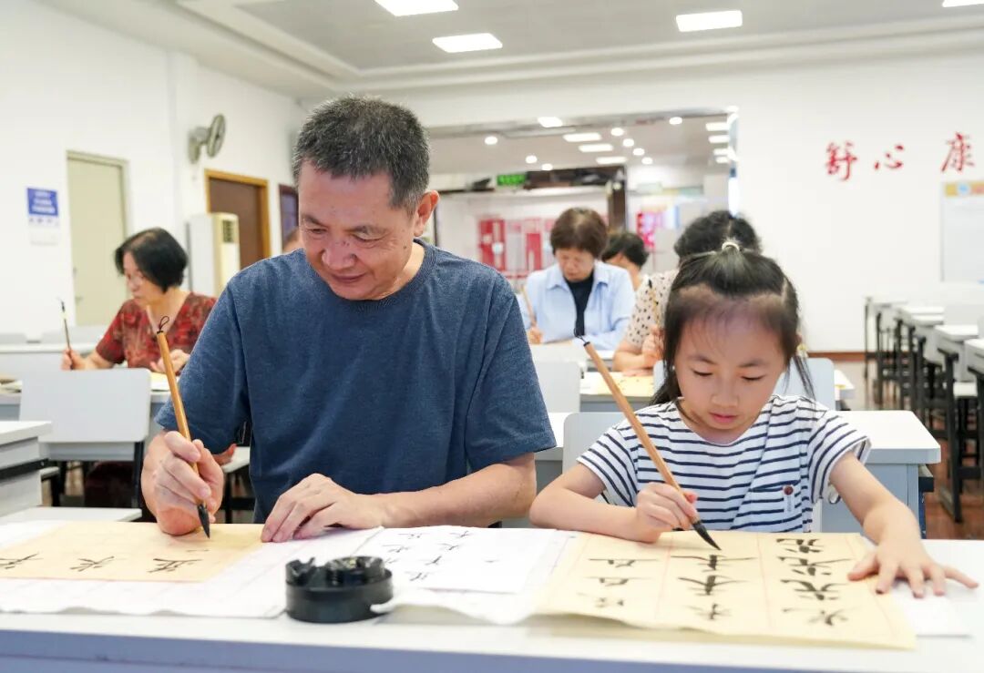 “老少同乐”系列活动以打破年龄界限为目标,通过丰富多元的活动形式,构建起老年人与青少年平等交流、互助学习的平台。在暑假公益课堂中,书法班的老少学员围坐案前,老年学员以多年习字经验指导孩子执笔姿势,孩子则用稚嫩笔触模仿长辈的运笔力度;葫芦丝课堂上,青少年跟着老年学员的节奏调整气息,老年学员则向青少年请教筒音指法技巧;视频剪辑课里,当老年学员面对手机屏幕略显生涩时,青少年主动化身 “小老师”,手把手教老年学员添加字幕和特效,让科技学习不再有年龄鸿沟。