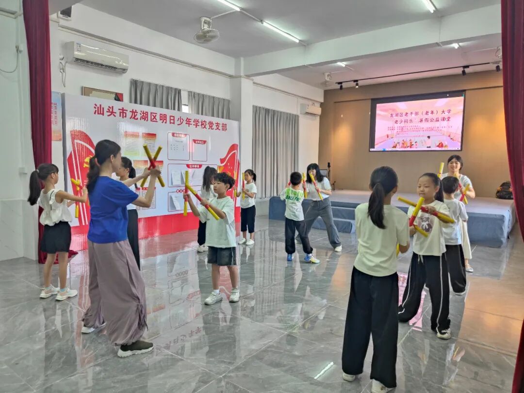今年暑假“老少同乐”加入了英歌舞教学,通过踏步、击棒等刚劲动作,让学员在挥棒间体会潮汕人“敢闯敢拼”的精神底色,让本土文化在代际传递中焕发新活力。