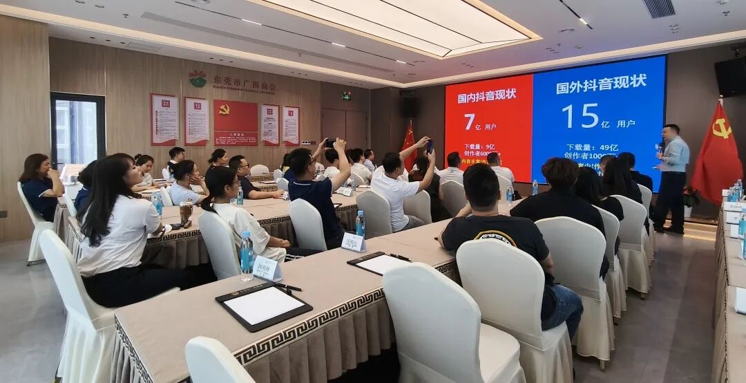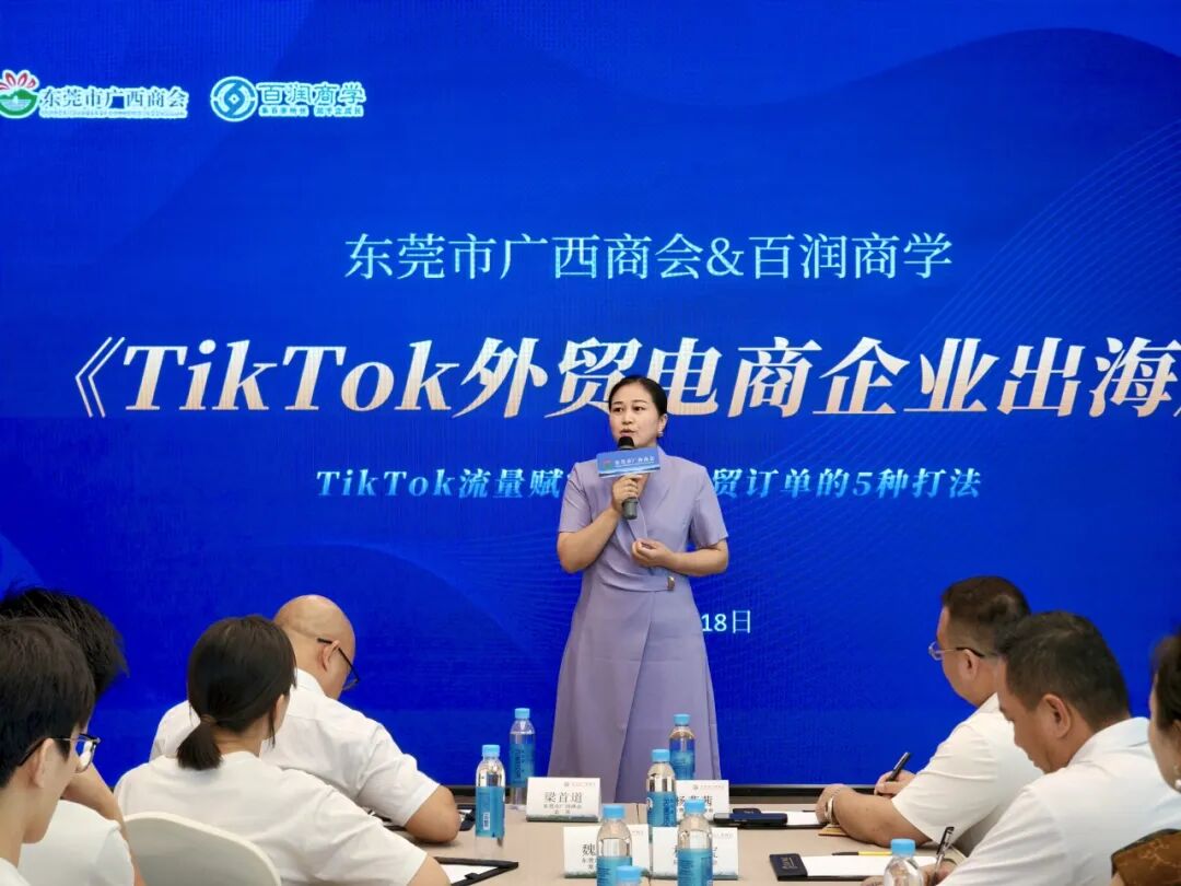 7月18日,东莞市广西商会联合战略合作伙伴百润商学举办《TikTok外贸电商企业出海》主题沙龙活动。活动聚焦会员企业拓展外贸订单的迫切需求,吸引了众多对跨境电商、TikTok营销感兴趣的企业家及业务骨干积极参与,现场座无虚席,交流氛围热烈。