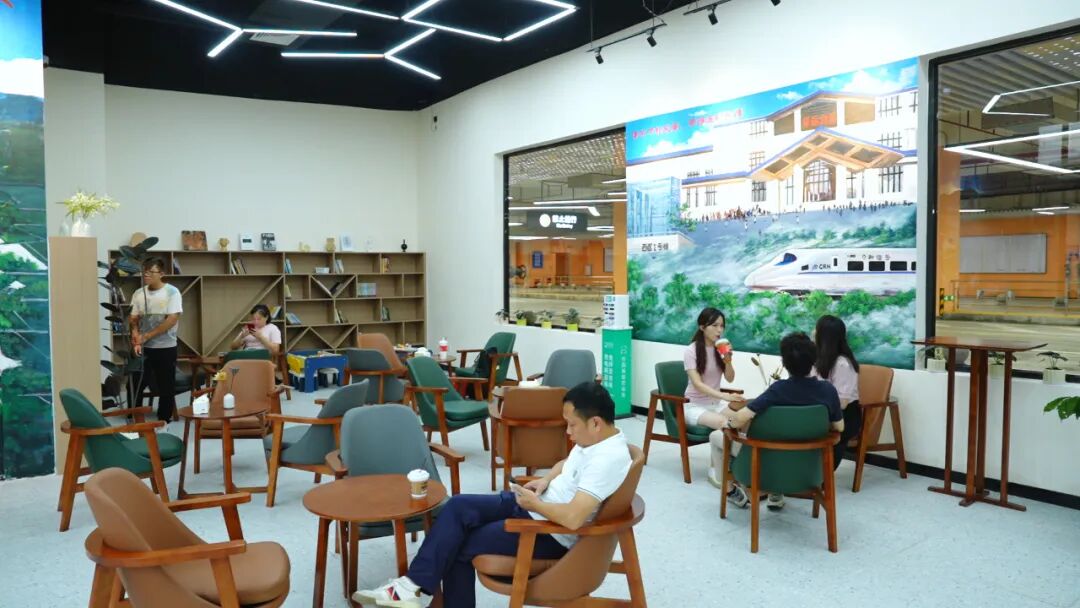 一座城市的温度,往往体现在细节里。除了风雨连廊,地下负一层的特色农产品销售馆成为乘客换乘途中的 “温馨驿站”。走进馆内,镇安咖啡豆、富林花生、托洞腐竹、迳心茶、火龙果干等数十种本地特色农产品整齐陈列,乘客可在出站前购买伴手礼,又可以在馆内休息区喝上一杯咖啡提神或者手机充充电,十分人性化。