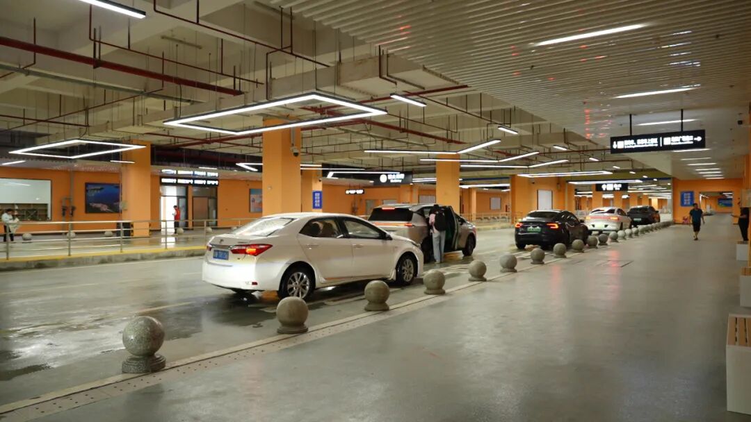 沿风雨连廊指引前行,搭乘电梯即可直达地下停车场或接送区。