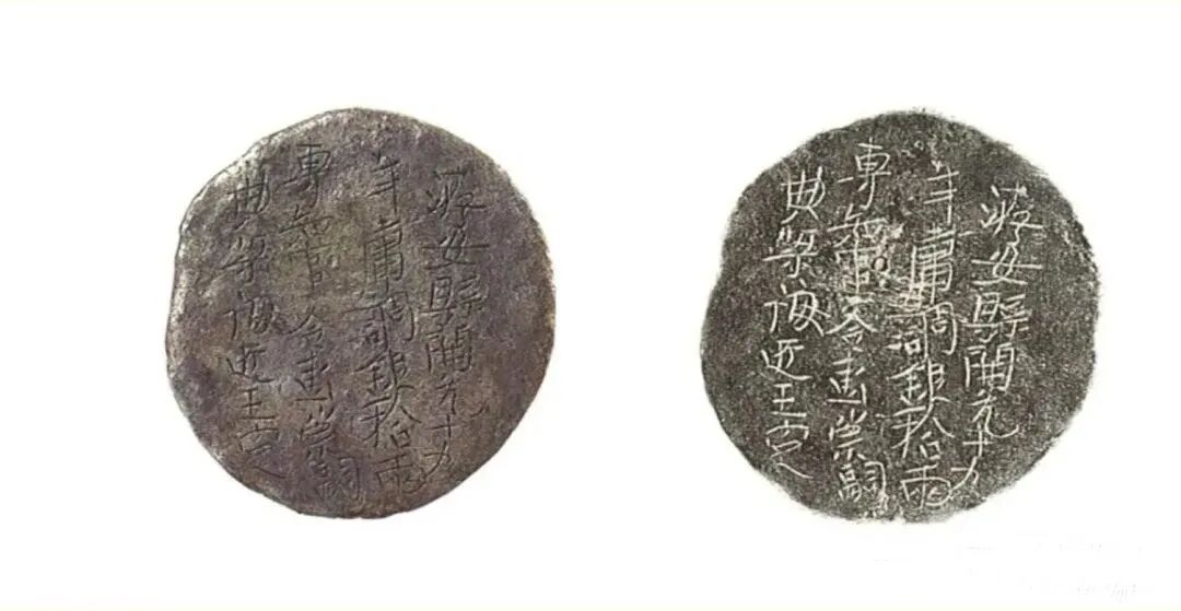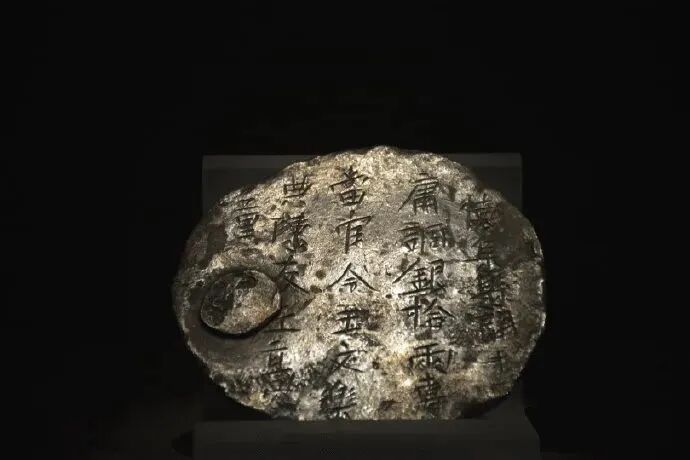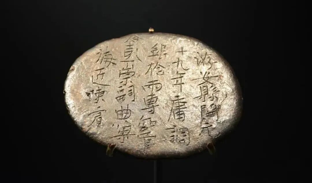 “洊安”庸调银饼乃唐开元十九年制。最大径9.6厘米,厚0.38-0.8厘米,重428克。洊安庸调银饼共发现三枚。其中两件刻铭相同,内容为“洊安县开元十九年庸调银拾两专知官彭崇嗣典梁海匠王定”。另一件银饼的铭文更改了最后的人名。将“匠王定”改为“匠陈宾”,背部也刻铭“陈宾”。