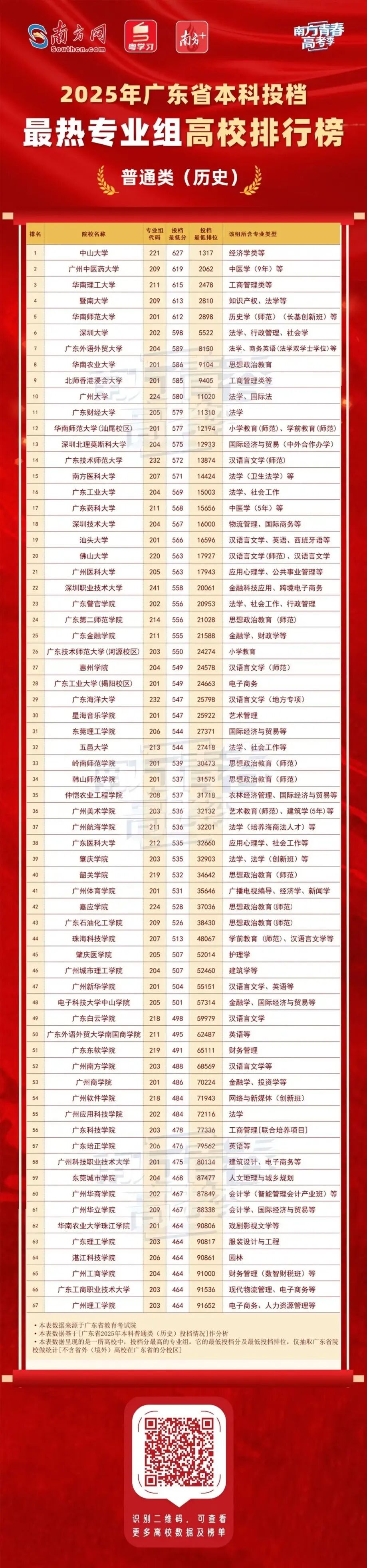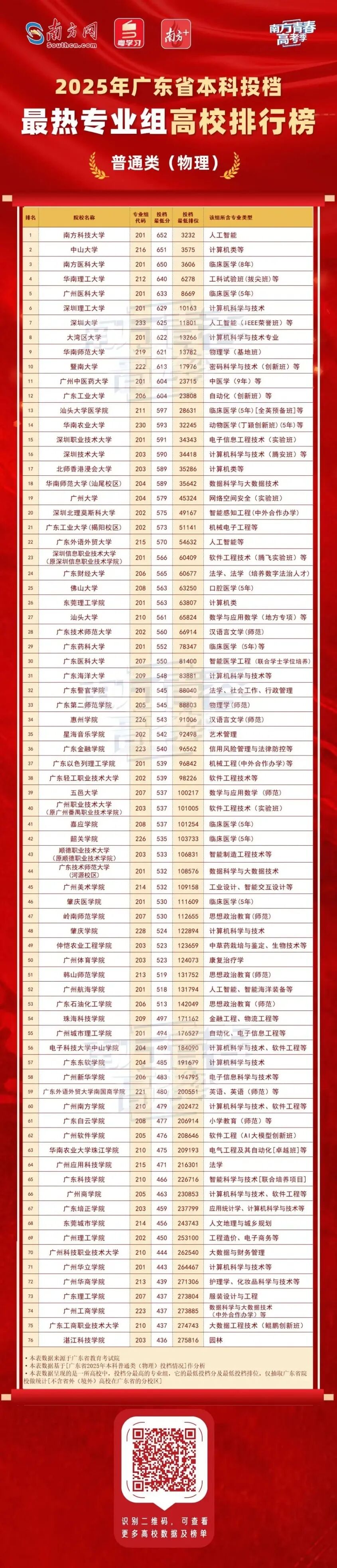 《2025年广东省本科投档最热专业组高校排行榜》
