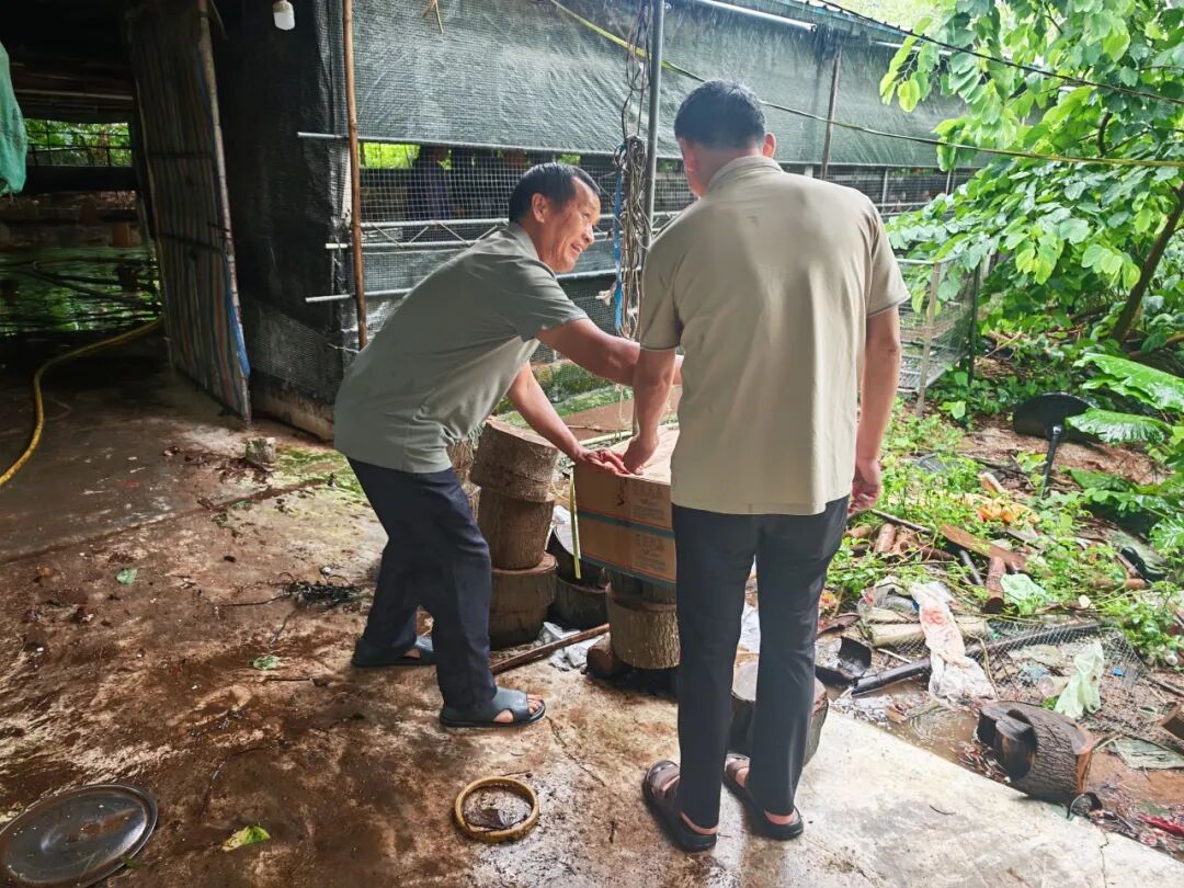 在位于良西镇的某规模化养鸡场,技术人员重点检查鸡舍结构、供电设备及排水系统。同时,现场指导养殖户做好场地消毒,提醒养殖户加强消毒防疫措施,防止高温高湿环境引发疫病。
