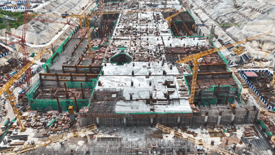 ▲ 广湛高铁珠三角枢纽站广湛线主体结构封顶。