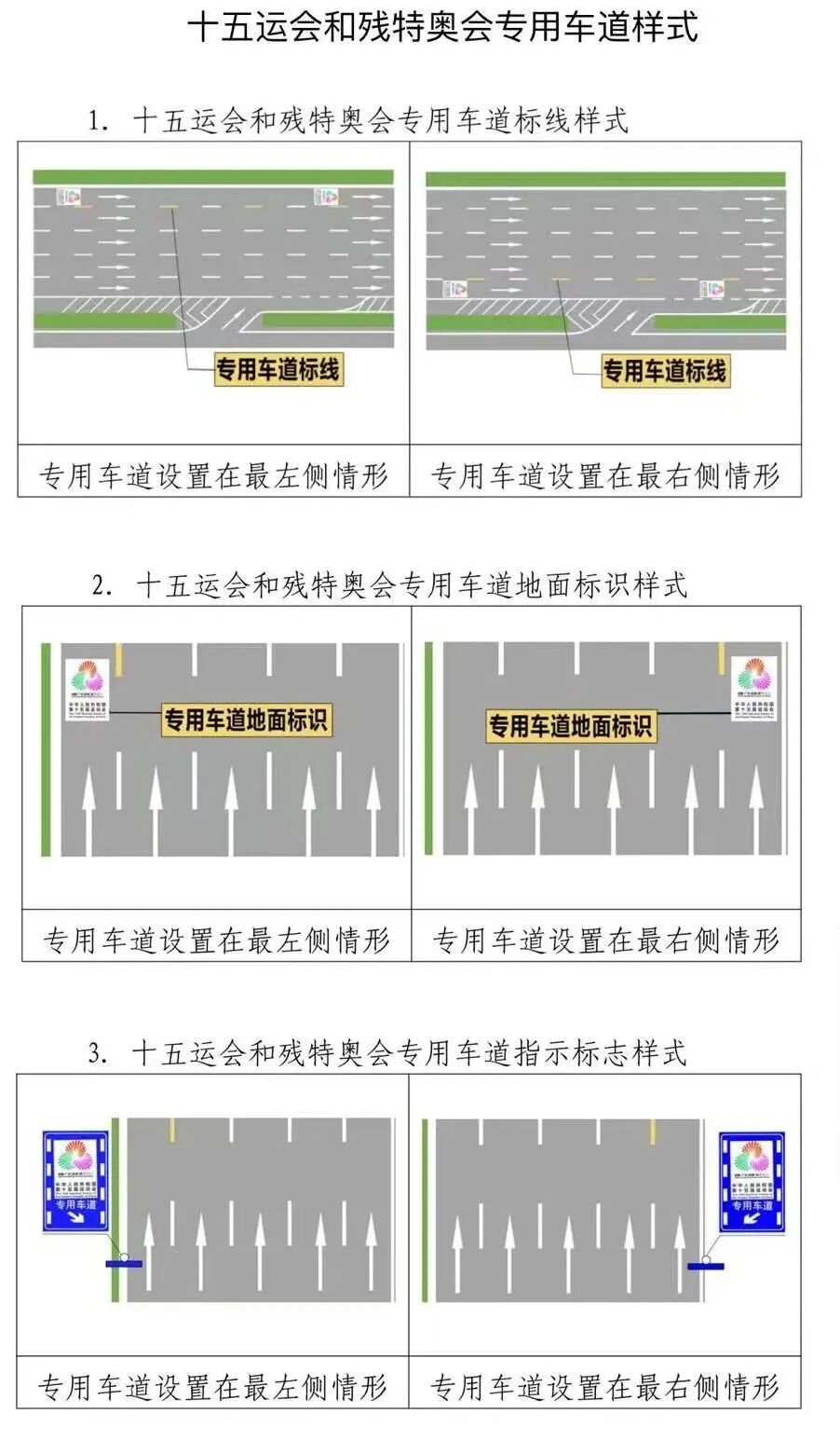 此外,在公交专用车道上设置十五运会和残特奥会专用车道的,允许公交车通行。在非公交专用车道上设置十五运会和残特奥会专用车道的,社会车辆可以借用公交专用车道通行。