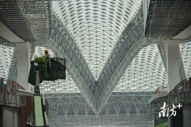 1月初,白云机场三期扩建工程交通中心综合体项目(以下简称“GTC项目”)顺利实现采光顶钢结构全面封顶。GTC项目是白云机场三期扩建工程的重要建设工程,包括综合交通中心、停车楼、出港高架桥等。项目规划引入6条高铁、3条城际轨道,将有机集成公路交通、铁路交通、城市公共交通、航空交通等多种交通形式,实现多模式交通条件下的快速换乘、高效出行,对打造白云机场三期立体综合交通枢纽具有重要意义。