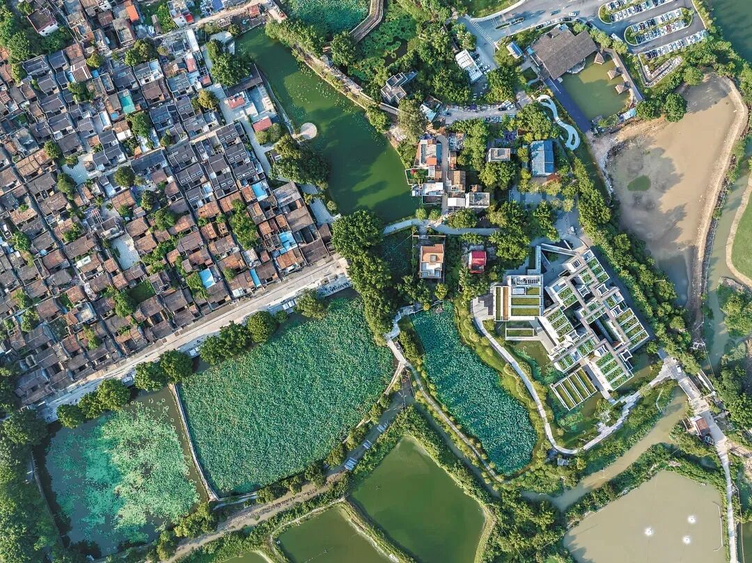 村公共文化中心建设也提上日程。建筑师张永和记得,自己第一次踏入塱头村时就有了灵感:“我被村里保存完好的古建筑打动了,想为保护这个美丽的村落出力。”于是,“春阳台”应运而生,名字源自岭南大儒陈献章的书舍名称。在张永和看来,“春阳台”应该融合当地文化,既要尊重传统,又要展示现代设计的魅力。为了适应古村落格局,“春阳台”采取聚落式布局,由10座小型单体建筑组成,具备展览、阅读、观演、研学等多元功能;建筑团队还将荷花塘“搬”到房顶,在屋顶上种植荷花。