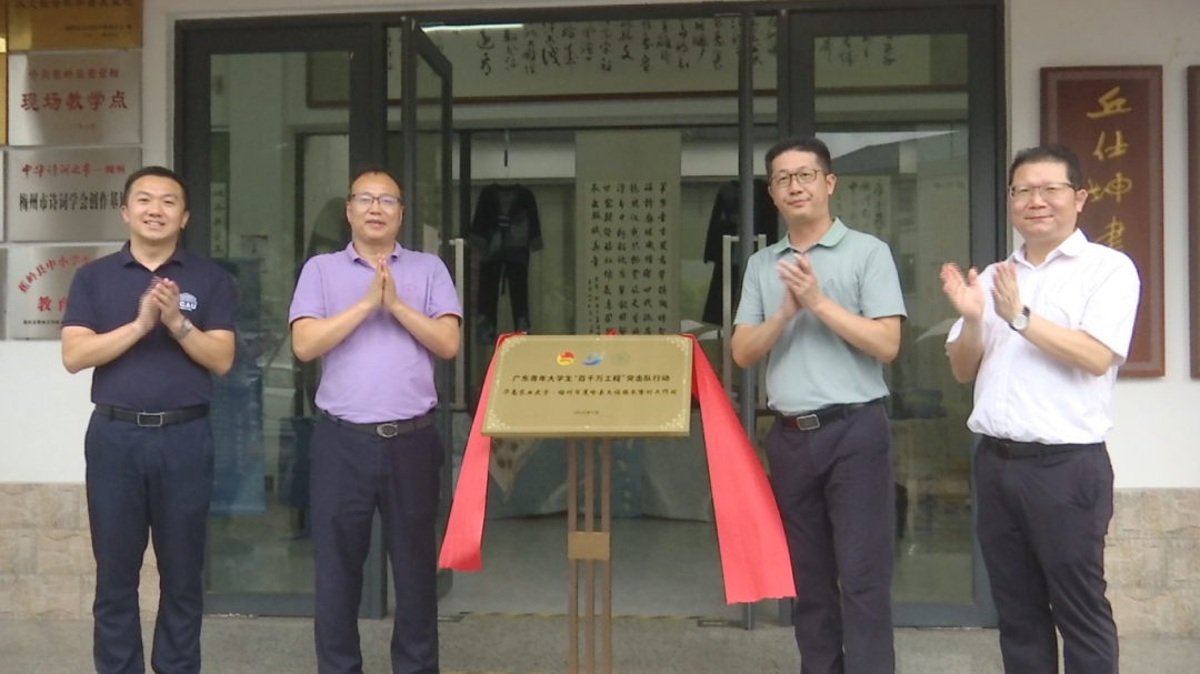 当天下午,华南农业大学调研组先后考察蓝坊镇三华李种植基地,文福镇丘成桐祖居、仓海诗廊,在仓海诗廊游客中心参观客家蓝染艺术展,慰问新硒望、"艺心乡印·一脉相承""百千万工程"突击队,并先后举行了广东青年大学生“百千万工程”突击队行动华南农业大学梅州蕉岭县蓝坊镇蓝坊村工作站、文福镇长隆村工作站,广东省"双百行动"驻蕉岭县服务队实践基地揭牌仪式。随后,召开座谈交流会,听取我县产业发展、农文旅发展情况介绍,共推蕉岭“百千万工程”高质量发展。