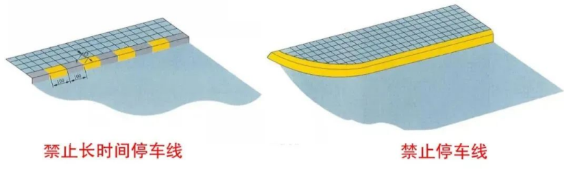 黄虚线/黄黑相间线:允许临时停放(驾驶人不得离车),禁止长时间停放