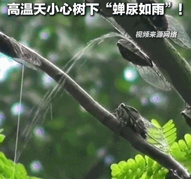 高温天气下,蝉吸食树汁更频繁,排泄量增大。部分种类聚集在一起,就会形成“蝉尿如雨下”的现象。