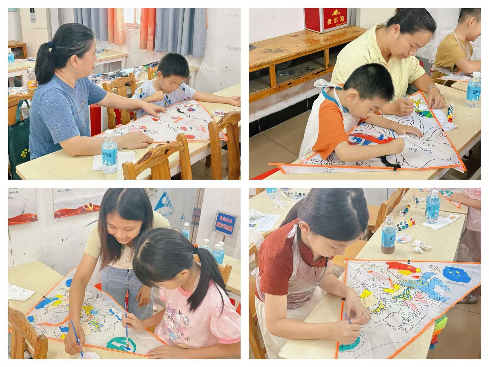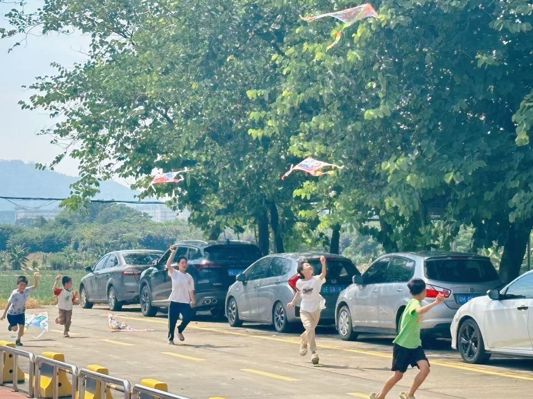 制作完成后,孩子们迫不及待地拿着亲手绘制的风筝跑到文化广场,迎着微风奔跑起来。这一过程不仅激发了孩子们的创造力,让他们体验到动手的快乐,更在互动中拉近了亲子间的距离。