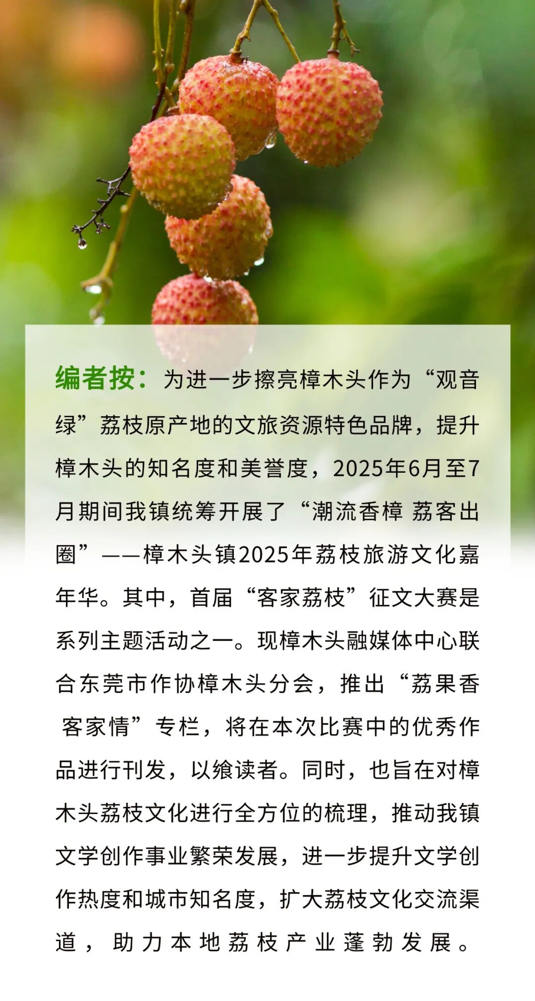 往后的岁月,家里没再买过荔枝,我以为与荔枝的缘分在那个夏天就已画上了句号。然而,时光偷偷记下了一切,它悄悄施展魔法,让当年没能种出荔枝树的我,大学毕业后来到了樟木头工作。樟木头有着悠久的荔枝种植历史,漫山的荔枝树多是百年老树,这些古树枝头挂着的桂味、糯米糍、观音绿哺育了一代又一代的樟城儿女,也抚慰了每一个孤独的异乡人。