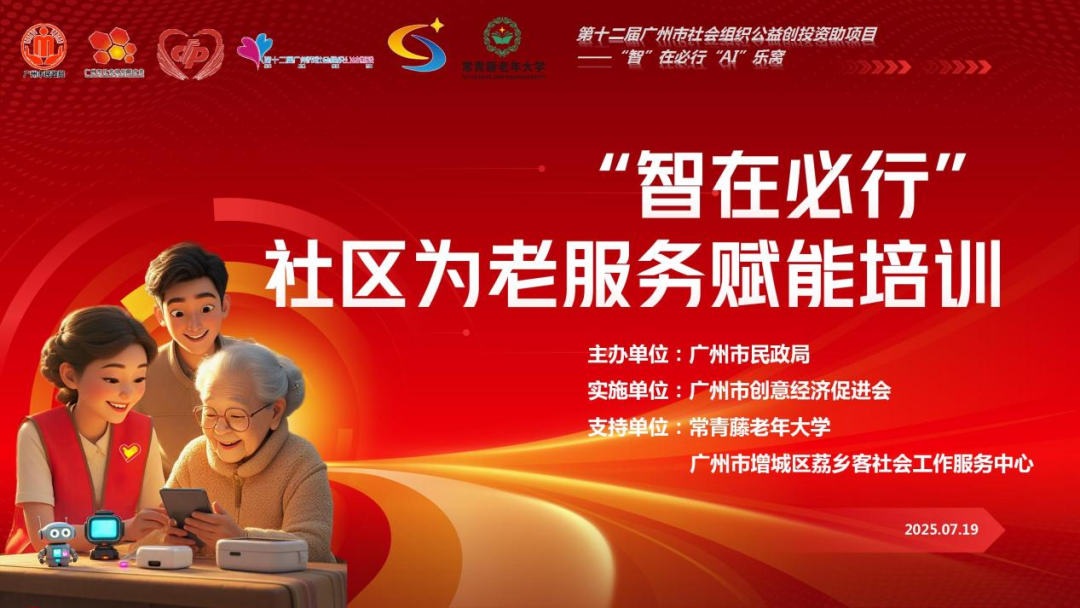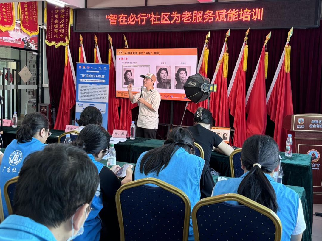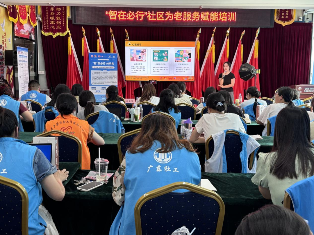 7月19日,首期 “智在必行” 社区为老服务赋能培训在广州增城热烈举行,近五十名一线社工、志愿者齐聚一堂,共同学习探索破解银发族 “数字困境” 的有效模式。本次培训由广州市创意经济促进会依托第十二届广州市社会组织公益创投资助项目——“智”在必行AI乐窝,联合增城区荔乡客社会工作服务中心等机构举办,覆盖派潭、石滩、增江、中新等镇街社工站,助力社区服务工作者掌握智能化服务技能,为老年人搭建跨越数字鸿沟的"智慧桥梁"。