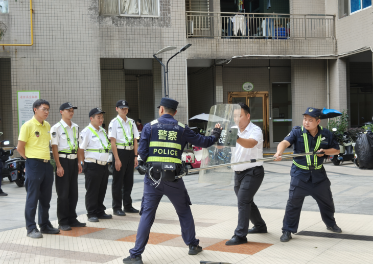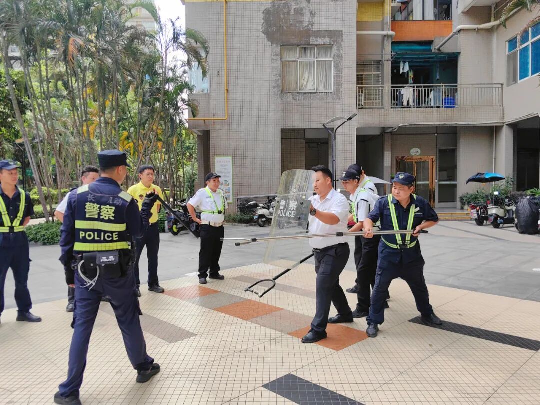 此次培训主要提升小区物业人员的安防核心能力,从钢叉盾牌协同攻防运用,到突发暴力事件处置流程的规范掌握,帮助物业人员夯实暴力事件处置流程。以小区最小应急单元为轴心,模拟演练快速响应与紧密联动机制。公安教官同步普及小区发生盗窃、纠纷闹事等紧急情况的应对方法和应急处理知识,筑牢小区安全防线。