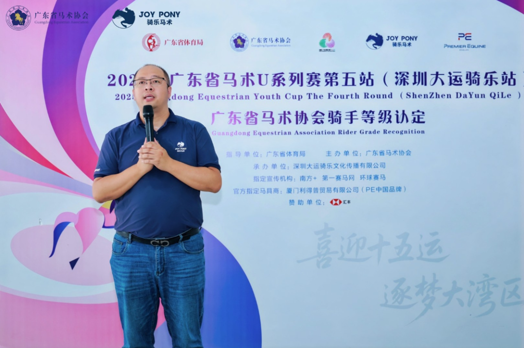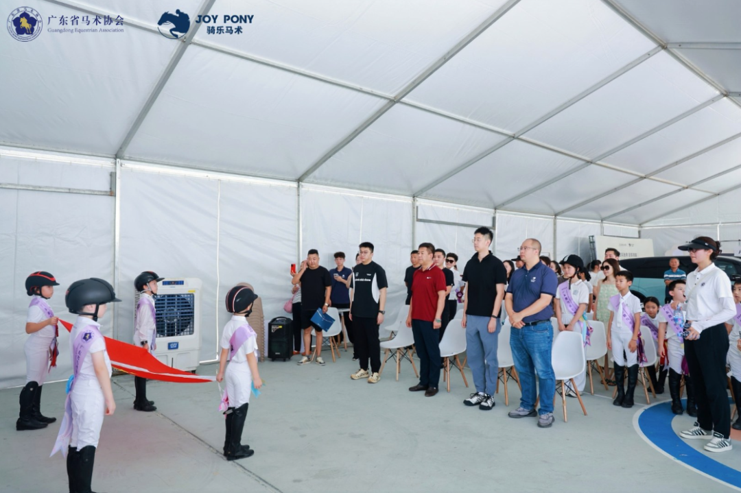 广东省马术协会常务副会长(专职)陈广新、骑乐马术总经理吴文术、大运天地综合业态负责人方泽思等领导嘉宾及参赛骑手、家长莅临现场,出席了开赛仪式。