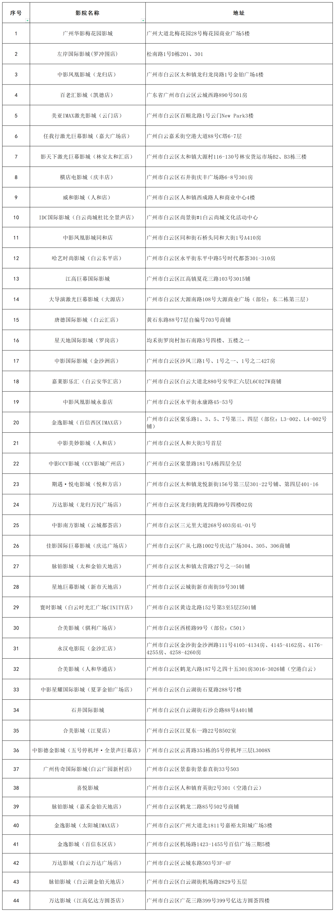 白云区超全影院名单