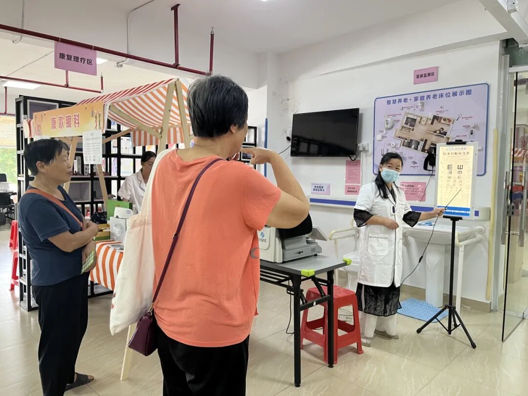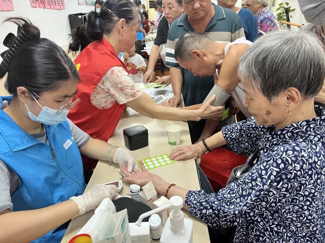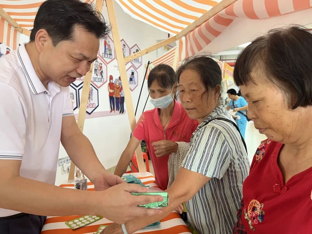 活动现场还设置“健康加油站”,来自医疗机构的义诊理疗、中医把脉、眼科检查保健等健康检查摊位,为长者们免费进行血糖血压、眼睛、耳朵等健康检查服务。