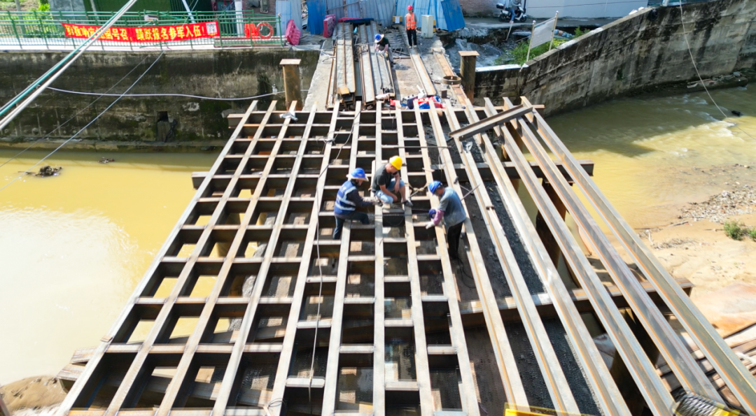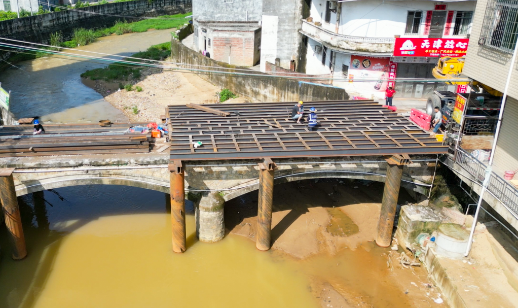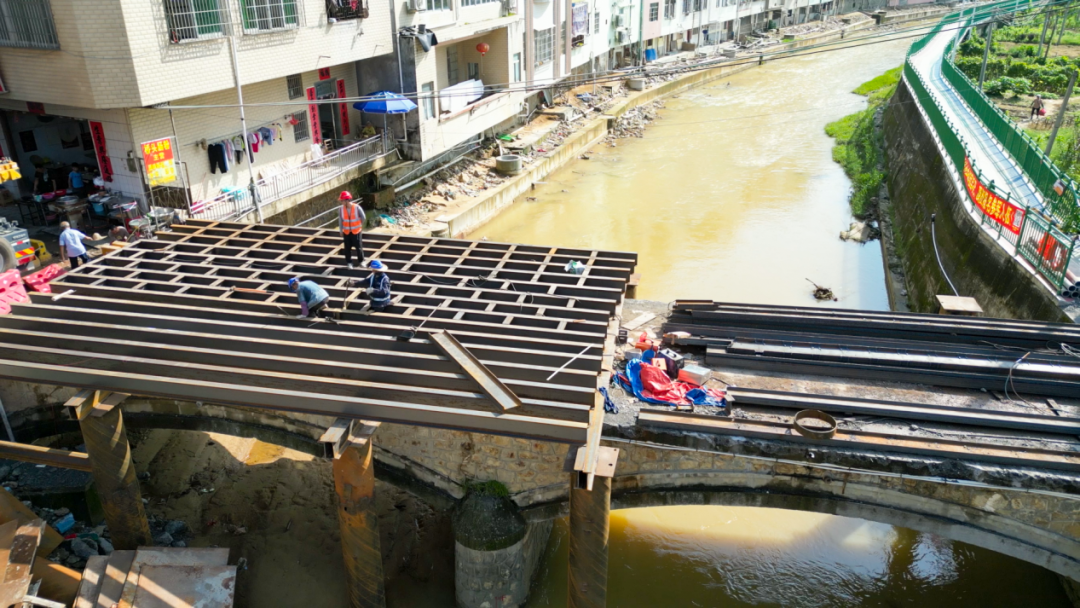 为确保修复工程实现“安全、民生、长远”效果,泗纶镇前期进行全面深入勘查,依据专业鉴定报告和专家意见,最终确定采用钢结构加固修复方案。该方案不仅着眼于恢复桥梁原有通行功能,更将显著提升桥梁的结构稳固性、防洪抗冲刷能力和整体耐久性。“我们成立了专班,全程监督工程质量和进度,我们也将以此次荣安桥修复工程为契机,进一步加强全镇基础设施建设和维护,不断提升群众的获得感、幸福感和安全感。”泗纶镇副镇长赖国权表示。