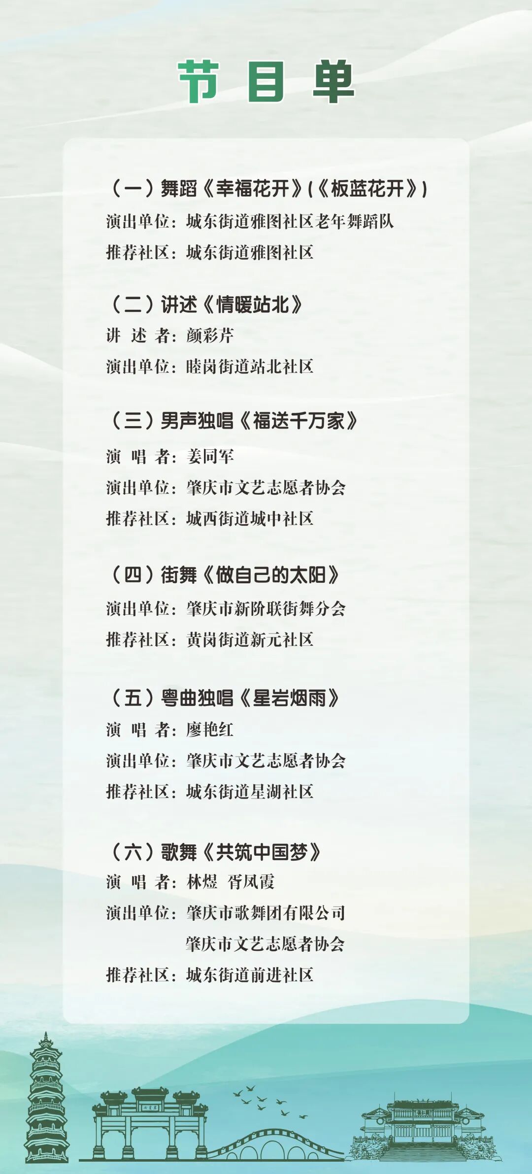 7月29日(周二)上午8:40,星湖国际广场二期中庭将举办热闹的启动仪式!现场不仅有邻里活动纪录片展播,还有精彩纷呈的社区节目表演——老年舞蹈、街舞表演、粤曲独唱、歌舞联欢……快来为邻里风采喝彩!(附节目单:舞蹈《幸福花开》、讲述《情暖站北》、街舞《做自己的太阳》等,千万别错过!)