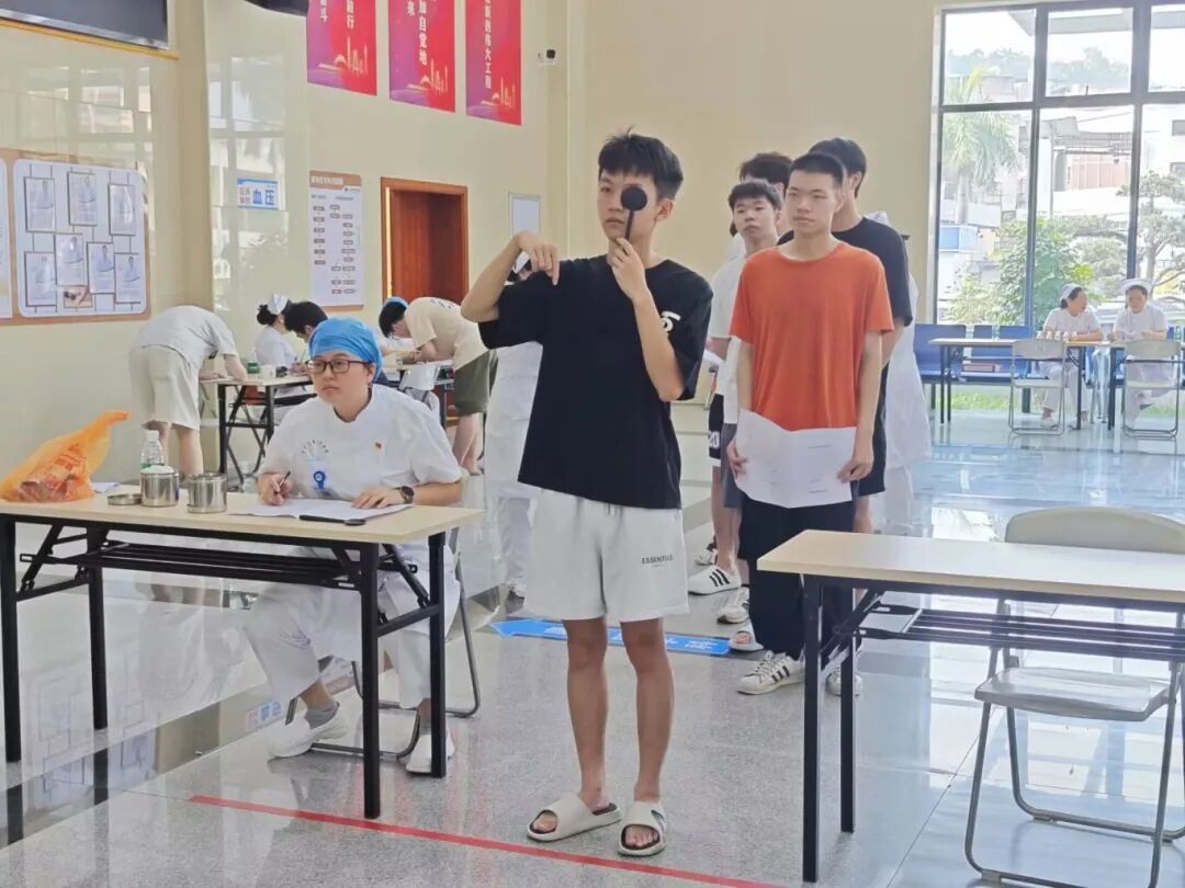 体检现场,应征青年在护士带领下,依次进行内科、外科、视力、听力、血常规等专业检查。医务人员严格按照征兵标准,对每一位应征青年进行细致检查,确保每位青年的身体状况符合入伍要求。