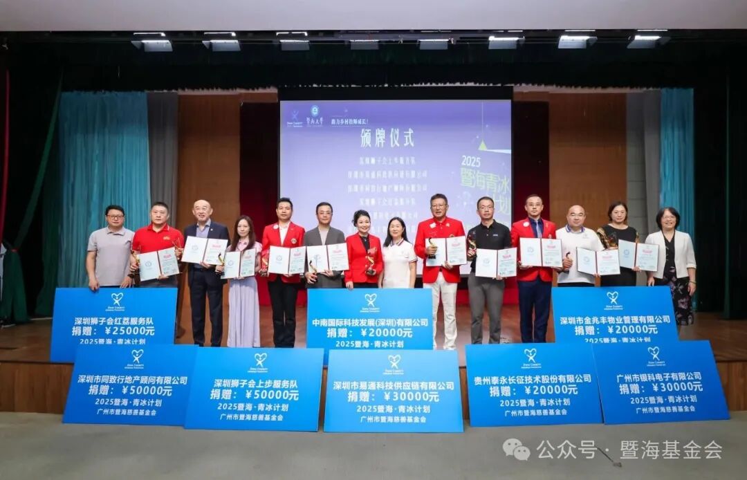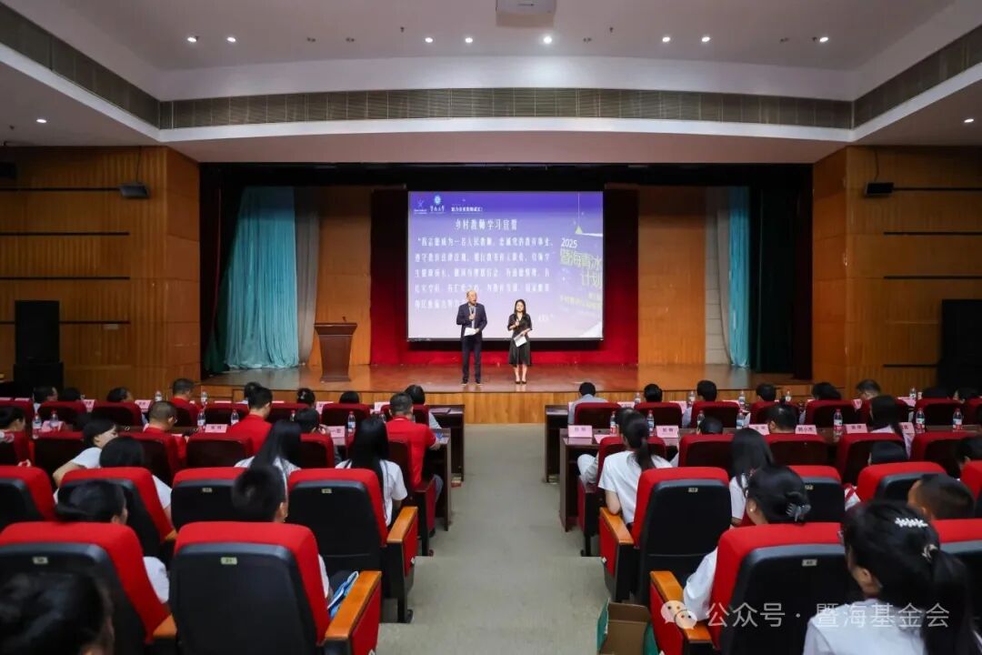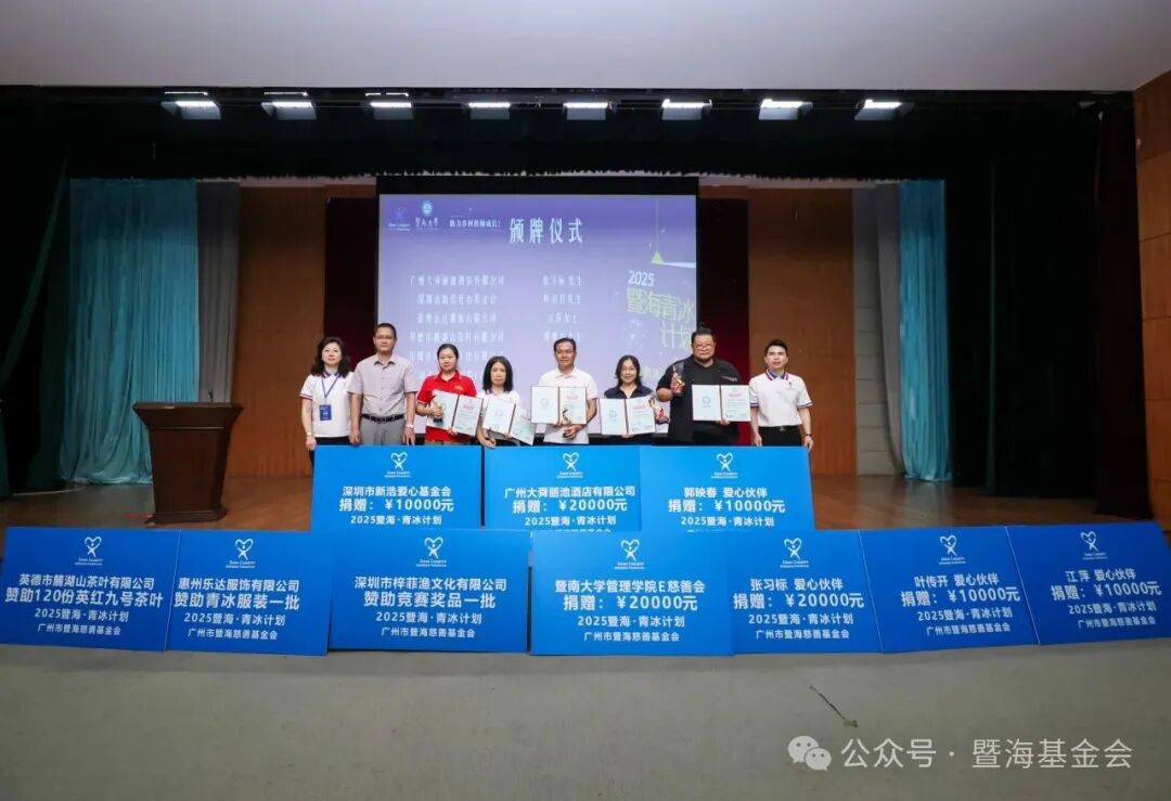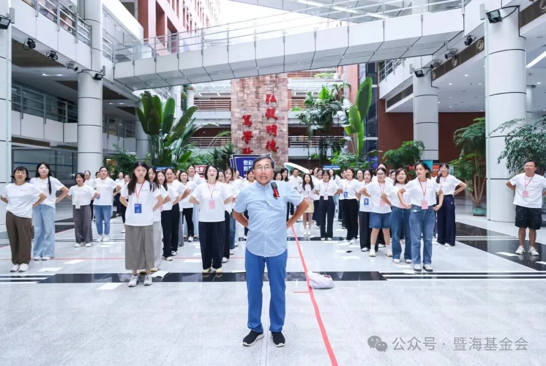7月21日上午10点,广州市暨海慈善基金会第七届青冰计划开班典礼在暨南大学管理学院正式开幕。典礼由王波博士和温敏老师主持。暨南大学党委副书记陈莹、暨南大学国有资产管理处处长朱滔、暨南大学管理学院副院长凌子山、暨南大学乡村振兴工作领导办公室主任钟春生、广东省暨南大学教育发展基金会常务理事颜海冰、暨南大学深圳校友会常务副会长庄清辉以及深圳校友会的校友们、深圳狮子会第一副会长温瑶丽以及深圳狮子会2025-2026年度理事会成员们、暨南大学管理学院E慈善会联席理事长彭友良以及E慈善会理事们、广州市暨海慈善基金会理事长刘晓瑞以及理事成员们、深圳市新浩爱心基金会秘书长倪以爱等嘉宾莅临现场。