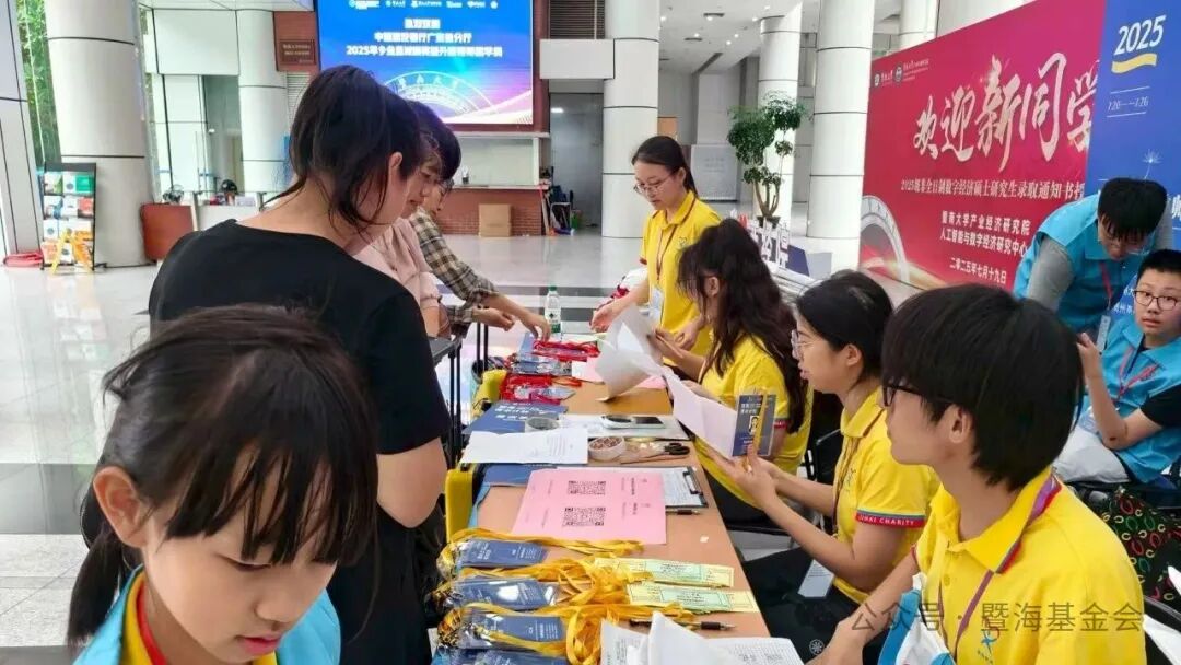 2025年7月18日至7月20日期间,暨海星彩志愿服务队的志愿者们已做好各项筹备工作,在报道当天,为舟车劳顿抵达管理学院的乡村教师们提供物资分发和路线引导等帮助。志愿者们的工作为青冰计划的如期举行和顺利推进提供了强力、可靠的保障。