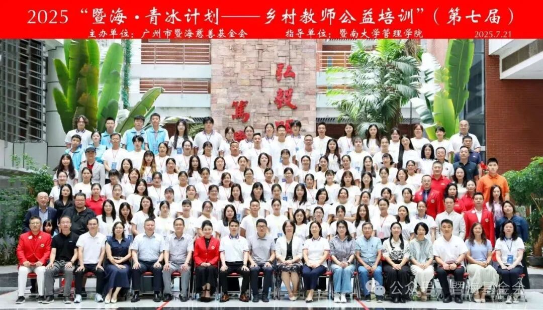 2025年7月,第七届暨海·青冰计划乡村教师公益培训正式开幕。全国12个省份的近百名乡村教师纷至沓来,共同在暨南大学管理学院集聚、五湖四海的老师们以涓滴细流汇成助力乡村教育向好发展的澎湃惊涛。疾风骤雨难阻进步之路,无私奉献终成教育伟业。