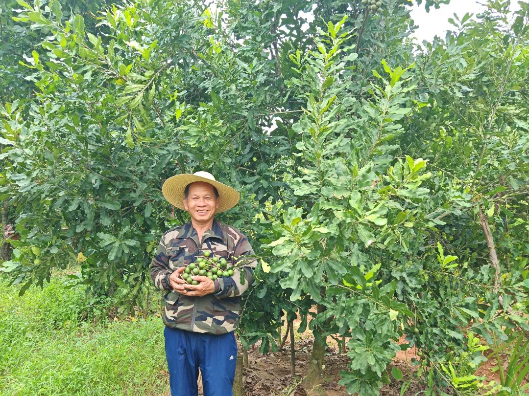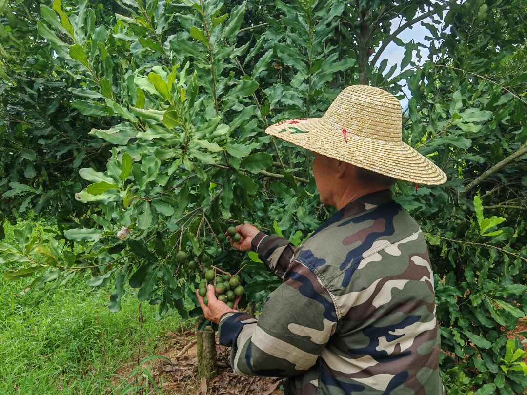 “坚果种植项目带动了附近村民开始种植,每户都种了几百棵。我从2017年开始也跟着他们种,每年有一万多元收入。像我们这样六七十岁的人,在家可以带孙子,果场比较容易管理,又能增加家庭收入,挺好的。”果农陈新枝笑着告诉记者。