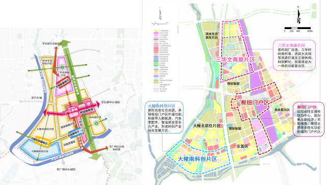 当前,广州北站片区构建“一核三芯,两轴两带,多组团生态网络型”空间结构。三华村位于“文商旅服务芯”及“三华文商旅片区”。根据控规,北站地区城市设计将遵循轴线引领,构建“十字轴”空间骨架,同时发挥空铁联运优势,集聚现代服务业,提升对周边区域辐射带动能力,将打造成亚太地区空铁联运大型交通枢纽、湾北商旅门户及现代服务业平台、绿色生态站城融合发展区。