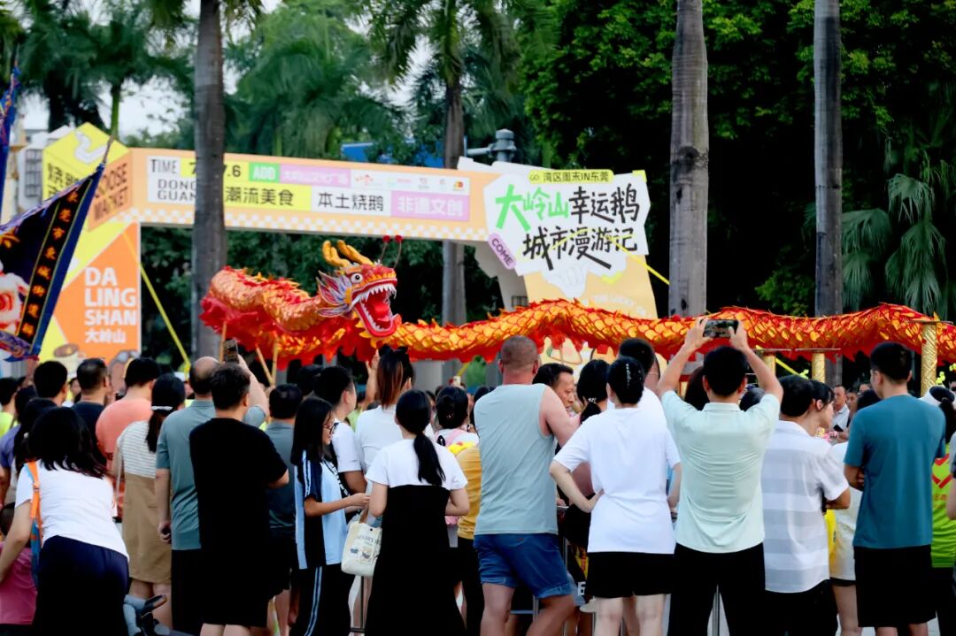 活动期间,各节目精彩纷呈,吸引大量市民游客参加,出现“万人空巷”盛况。英歌舞、飞天龙凤、醒狮表演以及明星模仿秀节目盛况空前,市民热情参与,共享这场文化盛宴。值得一提的是,活动期间还特别设置了三条主题文旅线路,并与人气IP“莞小鹅”形成互动,主题鲜明、体验丰富的旅游线路带市民游客开启全新的城市漫游模式,充分展现了大岭山“红绿交织”的特色旅游资源,推动“一日游”向“深度游”转变。