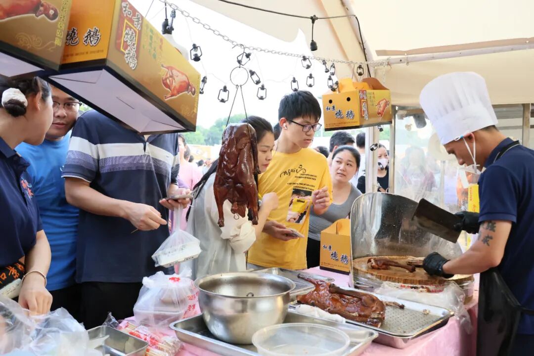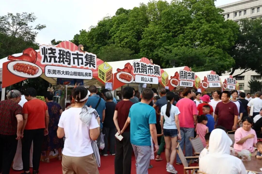 活动期间,美食集市人气爆棚,粤港澳台美食汇集,大岭山荔枝柴烧鹅更是成为消费“顶流”。除了大岭山荔枝柴烧鹅,更有星巴克、康师傅、煌上煌、比德堡等美食天团霸气助阵,现场还有港式烧腊、台湾蚵仔煎,小蚂蚁手工食品、LEMON UP!手摇柠檬茶、大岭山荔枝、霞姐传统美食……