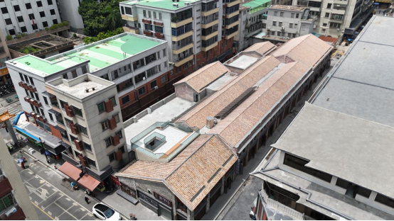 七月流火,新华坊以全新的面貌展现在广大老百姓面前,古色古香的传统风貌依旧,还多了几分现代的时尚气息。华南理工大学的陈昌勇、宋刚等专家团队与国家级非遗(灰塑)传承人邵成村团队共同参与修缮指导工作,保留了青砖外墙、红瓦屋顶、红砖立柱等历史元素,木纤维格子窗户原样复刻,让老建筑“修旧如初”。