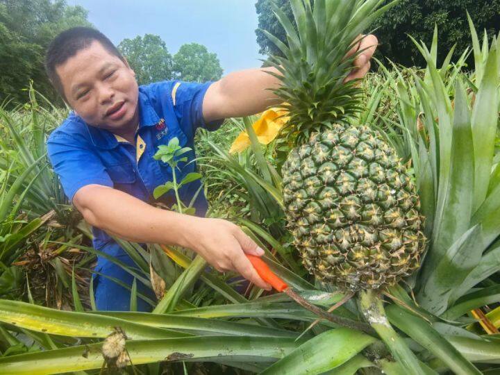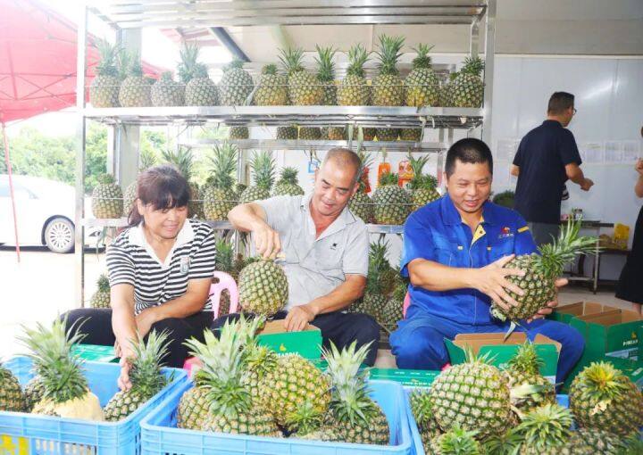据悉,该基地引种的台湾“西瓜凤梨”(台农22号),单果重达5至7斤,以其清甜多汁、口感爽脆等特点广受消费者青睐。目前,基地自然成熟的凤梨以每斤8元的价格,通过“市场直供+现场采摘”双渠道热销。