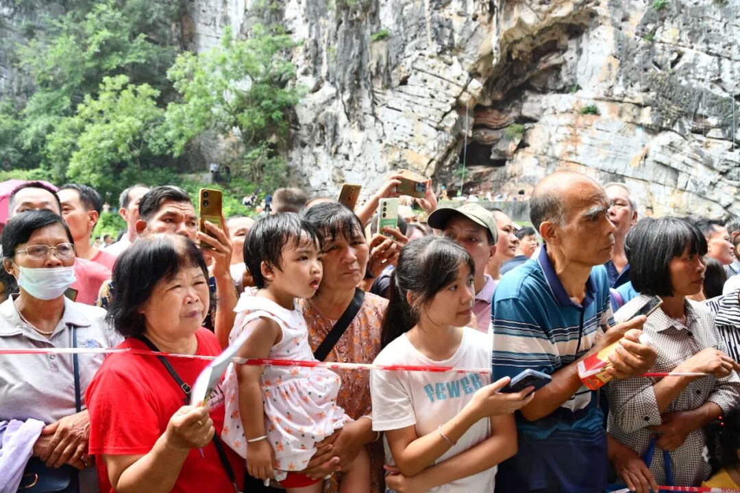 当天上午,天河情·怀集行——2025年怀集县六月六金燕文化旅游体育嘉年华暨文旅推介活动在燕岩景区启动。《乡村新颜》《桥头风情》《贵儿戏新编》等节目轮番上演,加深游客对当地风土人情和民俗文化的了解,趣味十足的玉米粥比赛引起阵阵欢呼声,影视演员互动环节更是点燃全场气氛,现场一片热闹融洽。