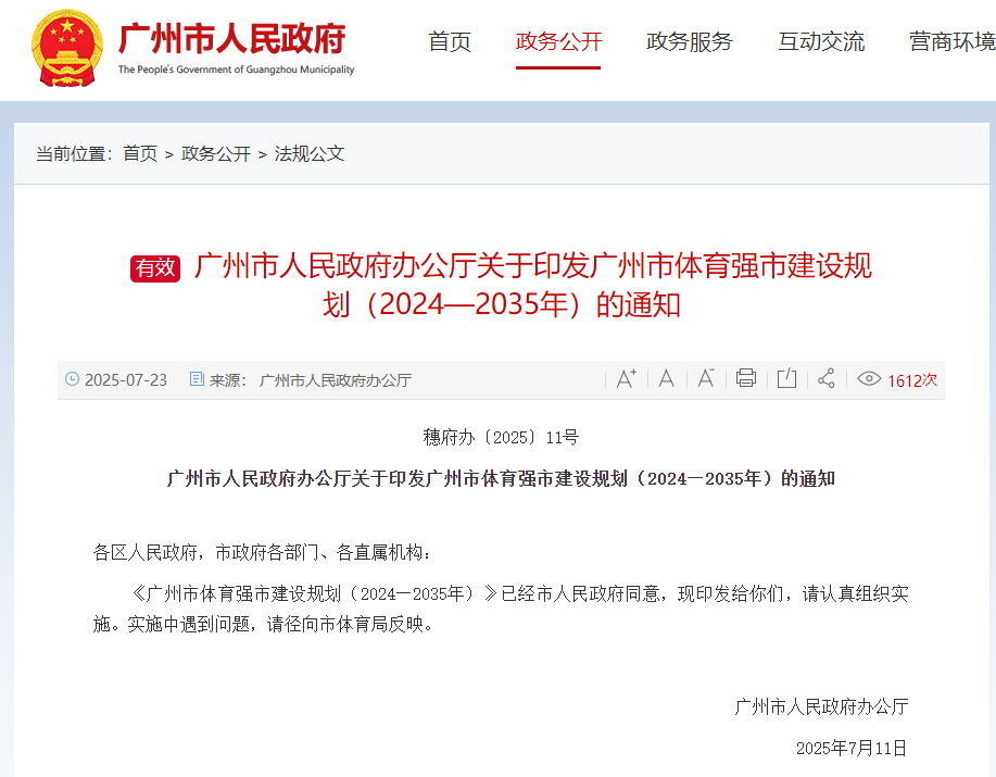 如何把赛事流量转化为产业增量?答案就在《广州市体育强市建设规划(2024~2035年)》中。将赛事资源开放给商业地产、旅游平台、金融机构等市场主体,推动双方自主洽谈、交易,从而为市场主体配置赛事流量,为赛事主体寻找到金融服务、商业配套、宣传推广等资源支持。